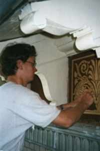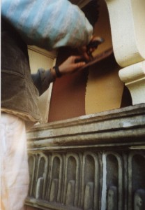 Der Hintergrund wird mit einem Kratzeisen freigelegt.