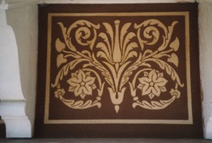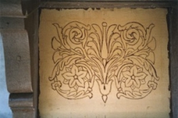 Dieses Sgrafitto, bestehend aus zwei verschiedenfarbigen Putzschichten,